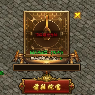 藏宝图里可以挖到各种特戒,这在初期算是特戒最简单的来源了。挖宝可能遇到三种情况,一种是直接挖到宝箱,会有元宝等道具直接拿到手,第二种是惊动宝藏BOSS,然后需要打败它。最好的当然是进入宝藏洞,可以开宝贝,看运气,特戒、各种精华、技能经验等等都有可能。宝藏洞第一次开始免费的,后面再开就需要消耗探宝令了。探宝令可以通过宝藏BOSS掉落,当然也可以在商城购买。