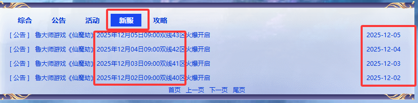 我们在官网点击“新服”,可以查看具体新服的开服时间和新区名称