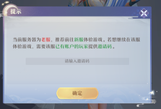 而开服时间较久的区服,点击进入会有输入邀请码的提示