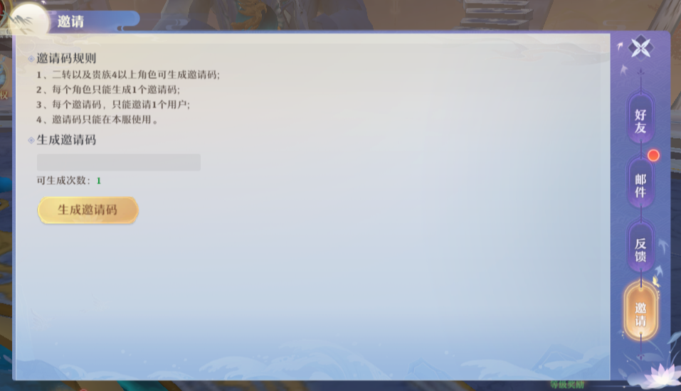 开服较久的区服进入则需要该区玩家提供邀请码,才能创建角色进入游玩
