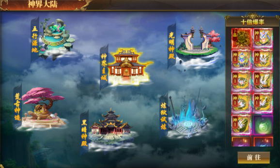 吸纳神元可升级神阶位级,获得大量神界属性,神界越高可进入的地图层数和副本层数越高。