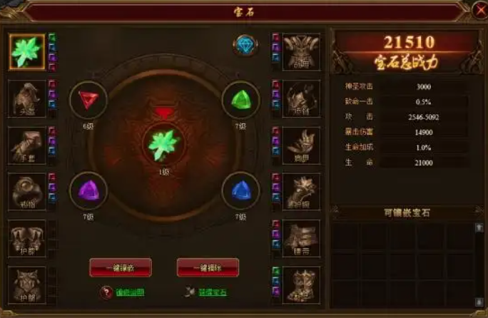 • 通过宝石的镶嵌与合成,玩家可以大幅提升角色的战力。