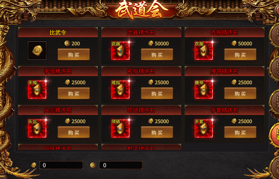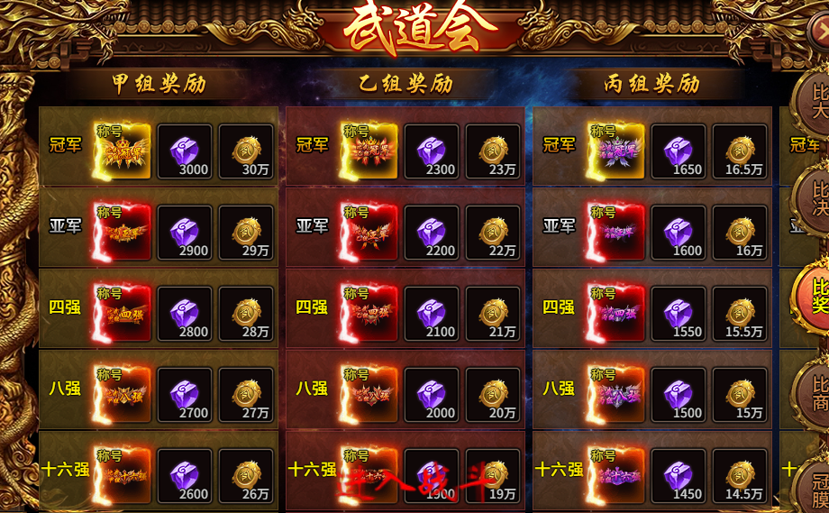 参加比武大会可以获得特殊货币,可以在比武商城购买道具。