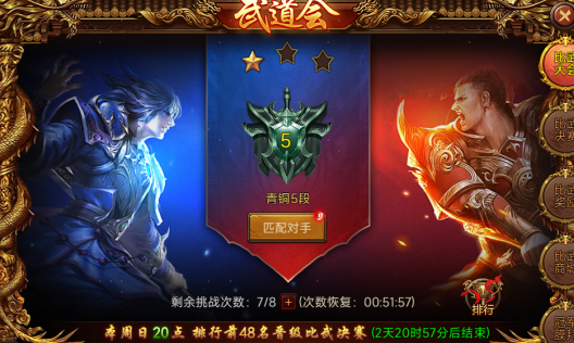 每隔一段时间进行一次比武大会,可通过1V1PK提升名次。